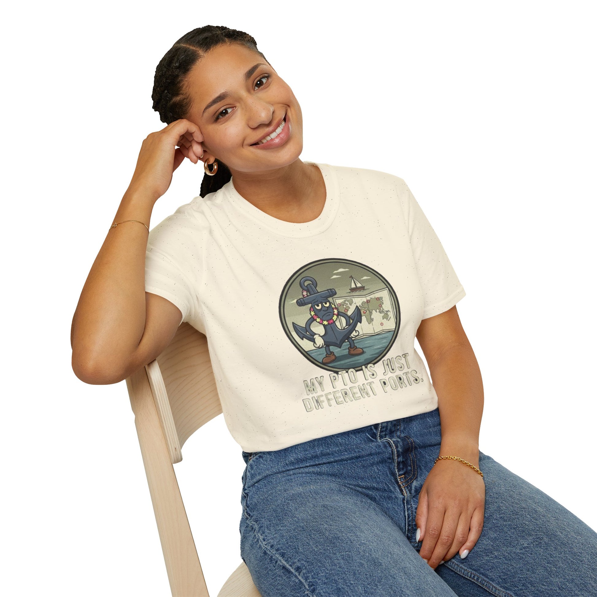 This hilarious US Navy PTO T-shirt captures the spirit of every sailor who knows shore leave isn’t rest — it’s a mission. Made with premium Softstyle™ cotton, this tee is built for comfort whether you’re standing watch, swapping sea stories, or plotting your next “vacation” destination.