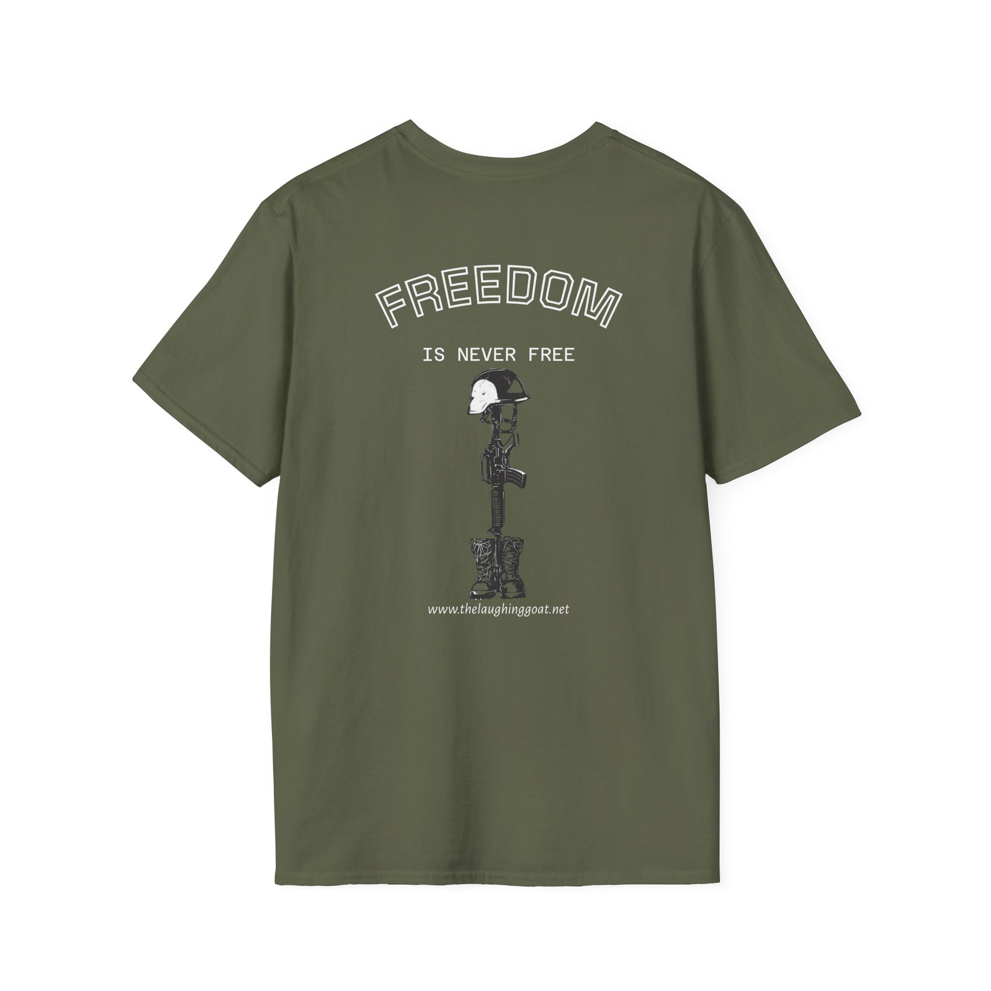 For the proud, the strong, the ones who want comfort too. “Honoring service. Chasing comfort. Your new favorite patriotic tee.